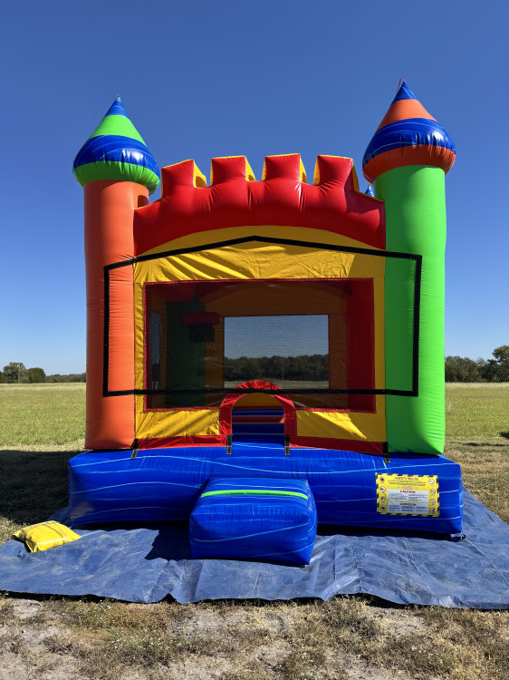 A bright, cheerful inflatable castle that brings the festival to your backyard. This roomy bounce unit features vibrant panels in multiple colors and classic castle-style turrets that create an instant party atmosphere. Designed for safe, active play, it provides plenty of bounce space for kids to jump, tumble, and laugh while adults relax nearby. Easy to set up and secure, it’s ideal for birthday parties, family gatherings, school events, and neighborhood celebrations where fun and color are the main attractions.
